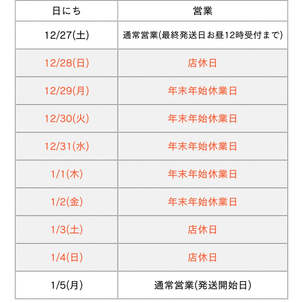 ※年内の商品の最終発送は、2025年12月27日(土)お昼12:00 受付までです。